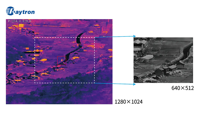 A key advantage of Raytron’s thermal solution is its ultra-high resolution (1280×1024). The leap from 640×512 to 1280×1024 resolution is not just about clearer pictures; it’s about tactical efficiency. At the same focal length, the field of view is quadrupled, drastically reducing the time required for full-area patrols. Furthermore, Raytron’s thermal imaging camera boasts exceptional sensitivity, as it is capable of detecting temperature changes of just 1.5 pixels from a long distance, enabling preemptive warnings before the fire spreads.